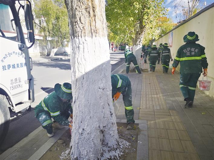 西藏拉薩市區近4萬棵樹木涂白換“冬裝”