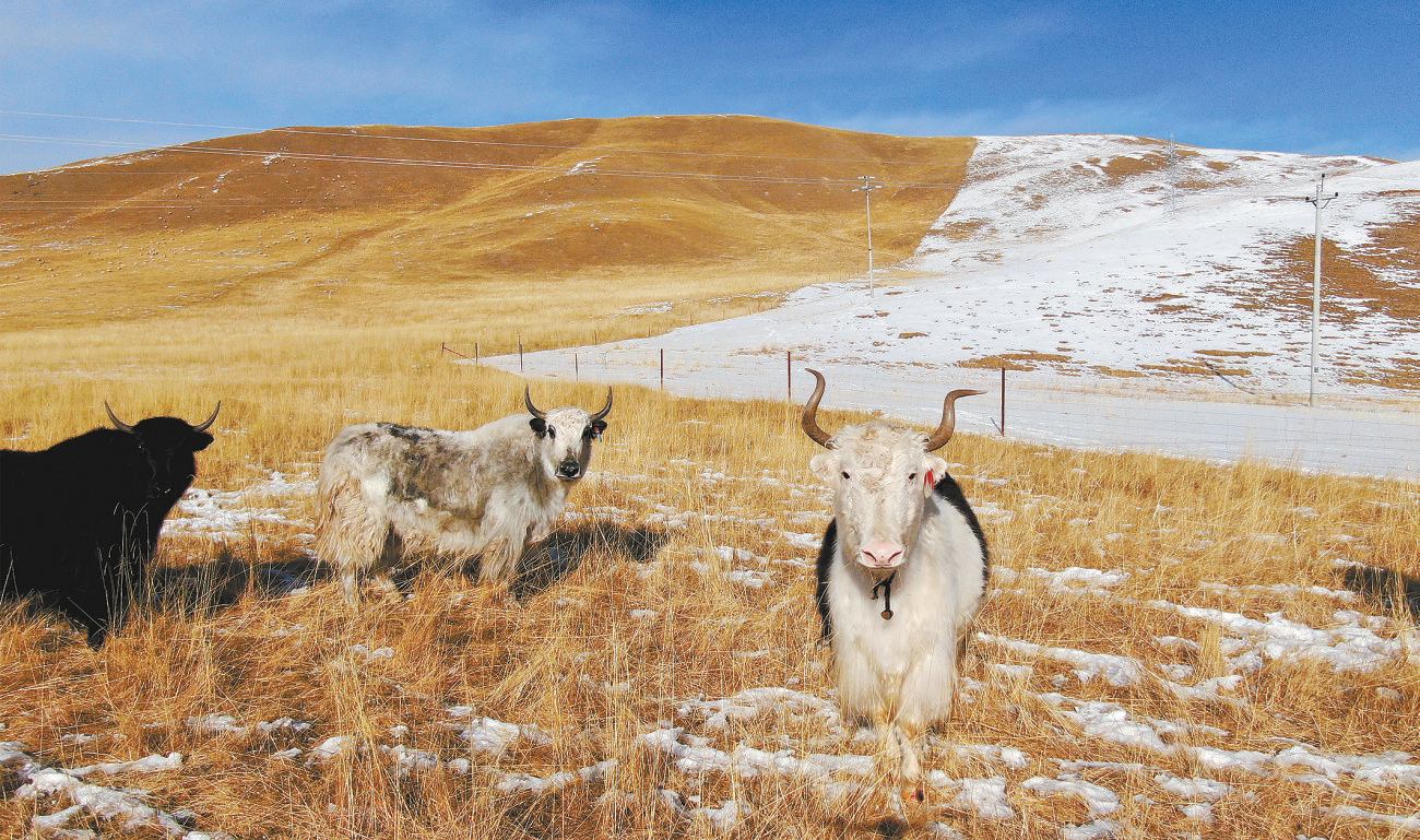 冬日時節,位于祁連山腹地的青海省海北藏族自治州祁連縣風光壯美,雪山、草原、森林、牦牛與羊群組成了別致的冬日美景。