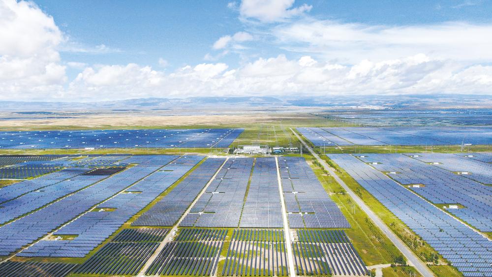 海南藏族自治州共和縣塔拉灘綠色產業發展園區拍攝的光伏電站(無人機照片)。 新華社記者 張龍 攝