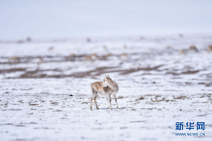 近日,可可西里迎來降雪,大量藏羚羊匯聚在可可西里五道梁地區,踏上遷徙之路。