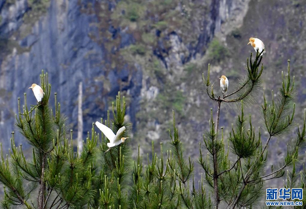 牛背鷺在易貢國家地質公園棲息(5月22日攝)。新華社記者 張汝鋒 攝