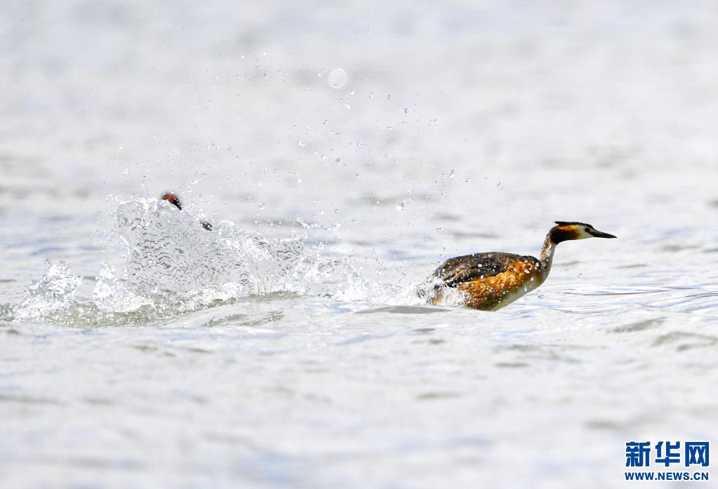 夏日里,鳳頭??和小??在西藏拉薩拉魯濕地國家級自然保護區水面上嬉戲。