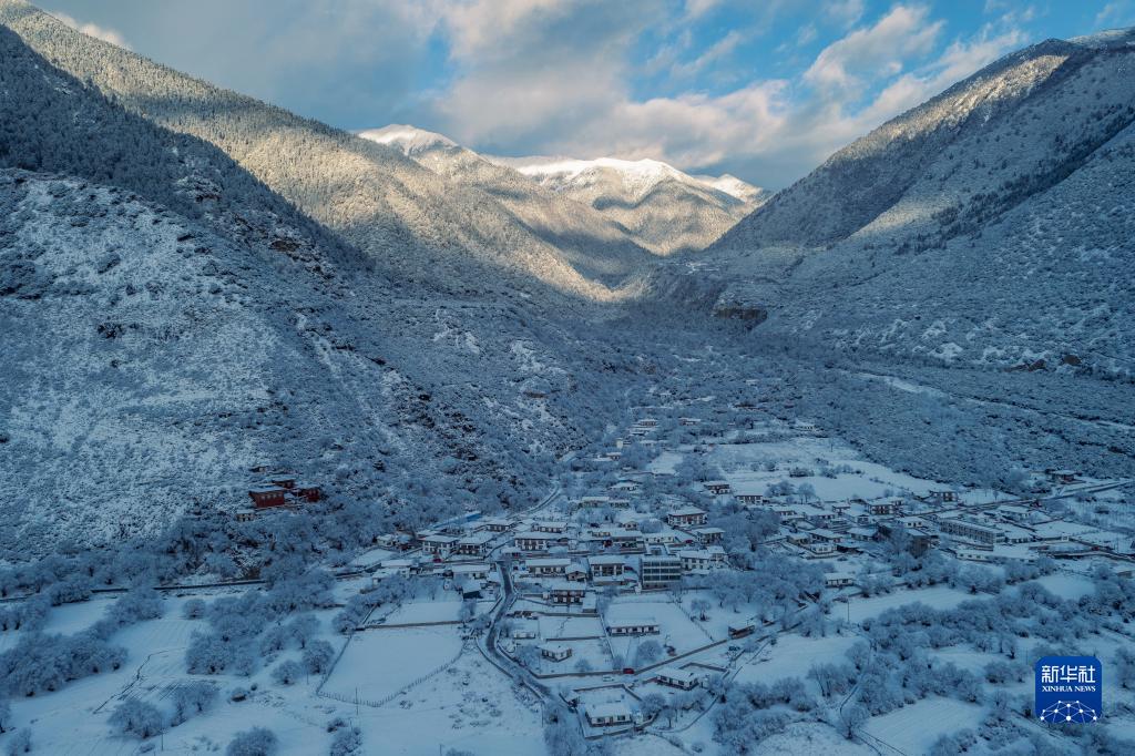 西藏林芝市米林縣派鎮雪景(1月14日攝,無人機照片)。新華社發(董志雄 攝)