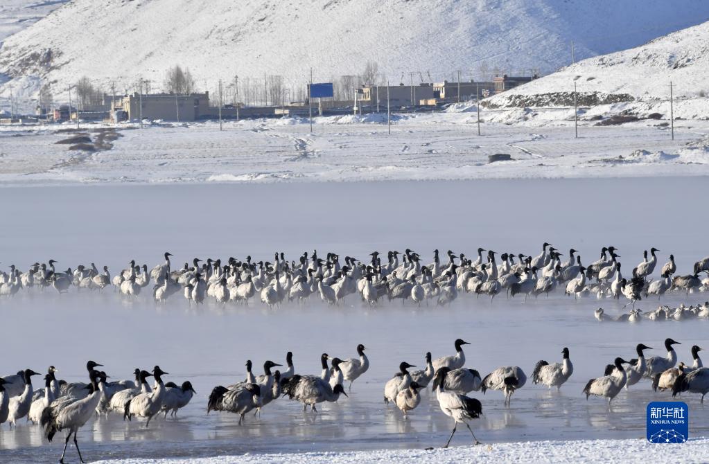 在拉薩市林周縣境內越冬的黑頸鶴(2月22日攝)。新華社記者 姜帆 攝
