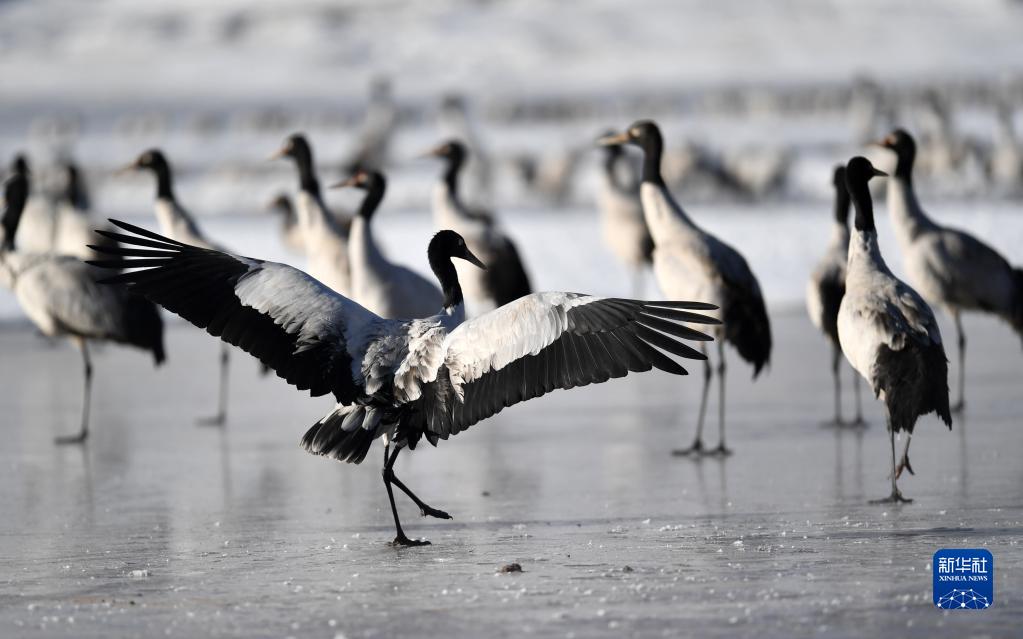 早春時節,在西藏拉薩市林周縣境內越冬的黑頸鶴開始為飛往藏北高原產蛋做準備。黑頸鶴是國家一級保護動物。據了解,近年來,西藏自治區多措并舉實施生態建設工程,黑頸鶴數量逐年遞增,目前西藏黑頸鶴數量超過萬只。