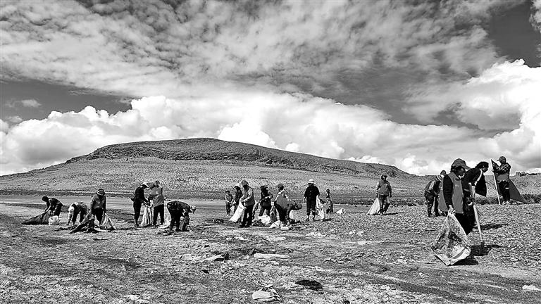 錯母折林湖位于日喀則市定結縣多布扎鄉境內,總面積達80平方公里,占多布扎鄉總面積的八分之一,是定結縣境內最大的高原咸水湖。近日,多布扎鄉扎西孜村組織駐村工作隊、黨員、團員、婦女代表共34人,深入開展“守衛綠水青山·環湖衛生整治”主題志愿行動,守護錯母折林湖優美風景。