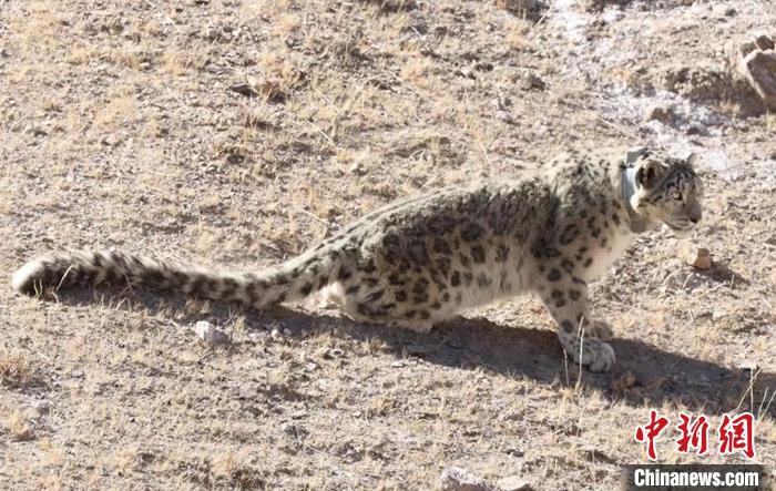 資料圖為佩戴衛星項圈的雪豹“祁跡”。 中新社發 祁連山國家公園青海省管理局 供圖
