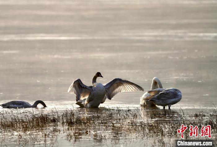 天鵝等多種野生鳥類“抵達”青海格爾木濕地越冬