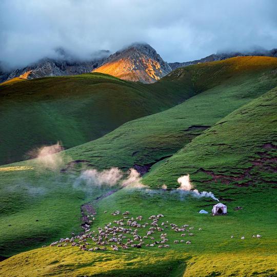 圖為焦生福作品《晨光炊煙》。 青海省祁連山自然保護協會供圖