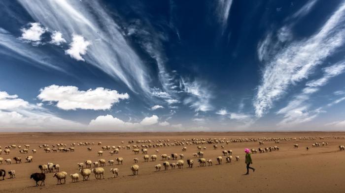 圖為焦生福作品《穿越沙漠的羊群》?!∏嗪J∑钸B山自然保護協會供圖