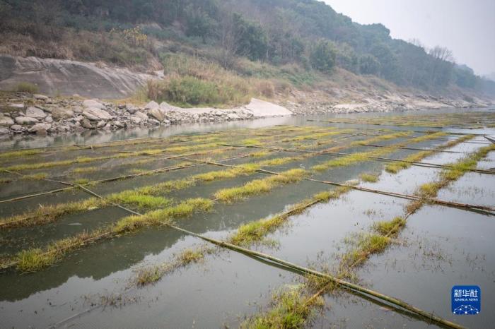 這是2023年2月7日在長(zhǎng)江重慶江津段岸邊拍攝的人工魚(yú)巢。新華社記者 黃偉 攝