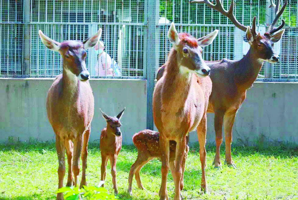 據(jù)介紹,五年來,四只“友誼之鹿”在飼養(yǎng)員的精心照料下茁壯成長,并在這里繁衍后代。2021年8月,白唇鹿“家族”雙喜臨門,雄性白唇鹿“京京”分別與雌性白唇鹿“援援”和“念念”生下了寶寶,分別取名“健健”和“康康”。現(xiàn)如今,兩只小家伙能吃能睡,快樂成長。