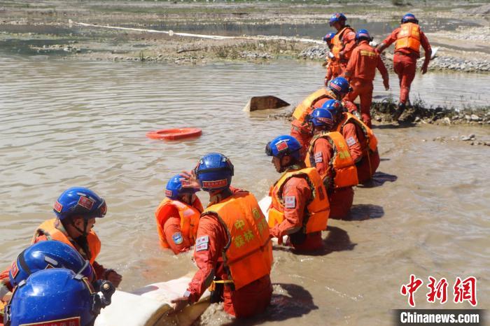 圖為進行排澇演練。西藏自治區森林消防總隊拉薩市大隊 供圖