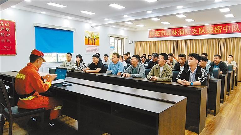 圖為林芝市森林消防支隊波密中隊的消防員為護林員普及緊急避險和自救常識。記者 旦增蘭澤 通訊員 李國燾 攝