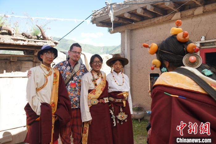 2023年8月22日,2023瀾湄國際影像周嘉賓來到瀾滄江上游青海省玉樹藏族自治州囊謙縣,探訪當地藏族古村落。記者 馬銘言 攝