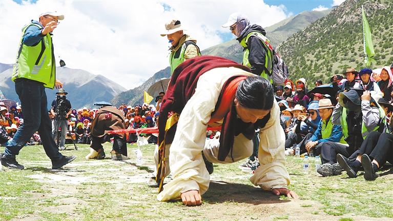 “‘繽紛四季·多彩林周’活動內容實在是太豐富了,我們沿途觀賞到了美景,而且還體驗了西藏民俗風情,現(xiàn)場看到村民們擠牦牛奶、手工制作奶制品、指尖技藝制作酥油花等。讓我們感到震驚的是藏族大哥、大姐的力氣真是太大了,能用繩子拉動越野車,扛起百斤重的石頭,給我們帶來了滿滿的視覺盛宴。我是第三次進藏,這次的收獲最多,讓我體驗到了不一樣的西藏。”來自北京的游客張先生興奮地說。