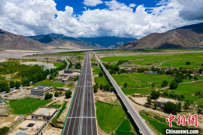 圖為西藏拉薩至日喀則高等級公路(左)和拉日鐵路(右)并行。(西藏自治區交通運輸廳 供圖)