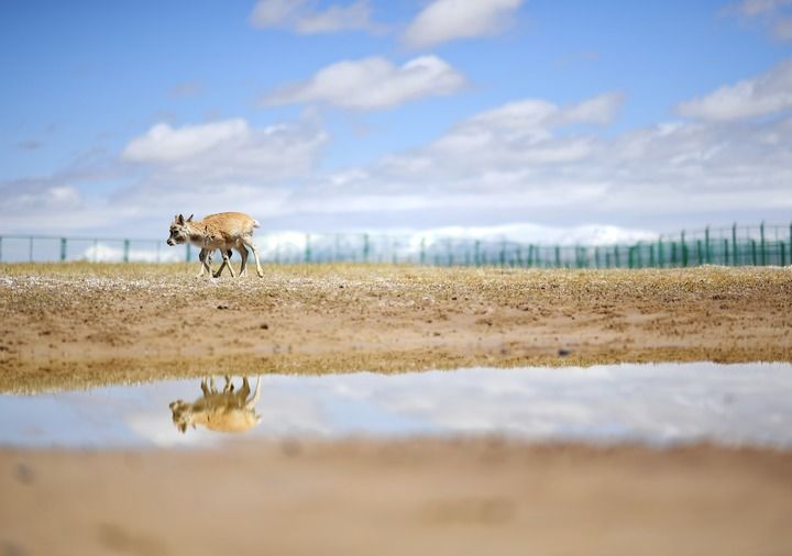 藏羚羊在可可西里國家級自然保護區索南達杰保護站野生動物救助中心活動(2023年5月30日攝)。新華社記者 薛玉斌 攝