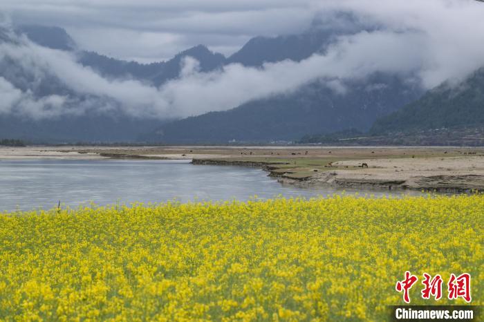 4月4日,西藏林芝市波密縣易貢鄉在雨后迎來絕美景致。云霧繚繞在群山之間,金黃的油菜花與森林、易貢湖、藏式民居、碧綠的青稞田相互映襯,宛如仙境。中新社記者 貢嘎來松 攝