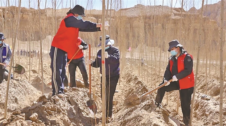 札達縣組織全縣黨政軍警民500余人,在565國道沿線開展2026年全民義務(wù)植樹活動。記者 永青 攝