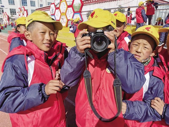 草原上的孩子“野”慣了,熱愛足球,旺杰群培老師便加入進來,給他們帶去了一節足球課。小小的足球,載著孩子們大大的夢想;他們喜歡音樂,仁增老師就帶著充滿詩情畫意的民謠歌曲,還有節奏感十足的舞蹈來到這里,跟孩子們熱情互動;要培養孩子們的國學情懷,陳明桃老師花費心思備課,設計方案,精彩的課程最終贏得了陣陣掌聲;美術能讓孩子們天馬行空的思維得到釋放,年輕的范思宇就帶著草原的驕傲——亞運圣火采集女神像來到課堂上,和孩子們一起描繪心中最美“女神”……大朋友用一節節精彩的課程帶著小朋友感知美好世界