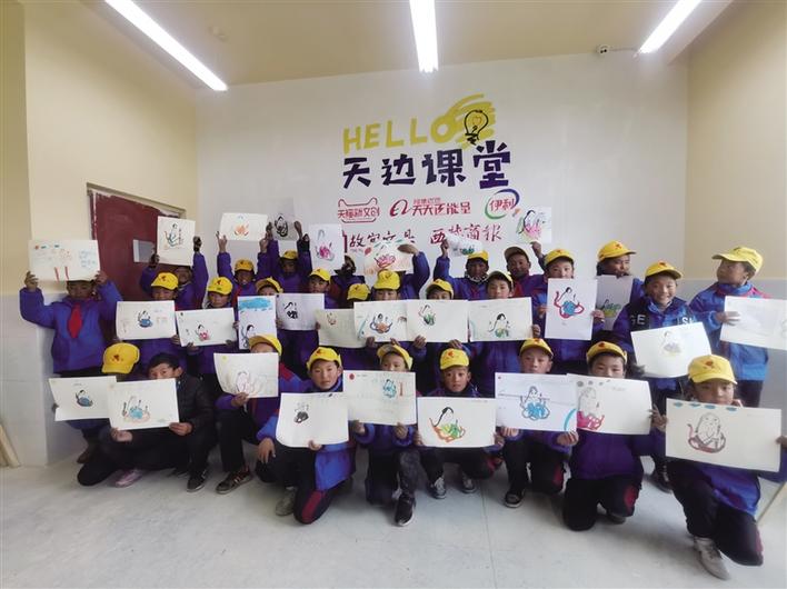 2019年8月,當孩子們迎來新的一學期,天貓、人民日報和故宮聯合宣布,故宮文具上線天貓。為了給孩子們一份特別的禮物,天貓新文創、阿里巴巴天天正能量、伊利、故宮文具、西藏商報聯合發起“天邊課堂”公益項目,為西藏一所村小改造一間海拔最高的“天邊課堂”教室,為孩子們送上故宮文具,設計形式多樣的美育課程,助力鄉村孩子在開學伊始揚帆起航,開啟新學期新體驗。