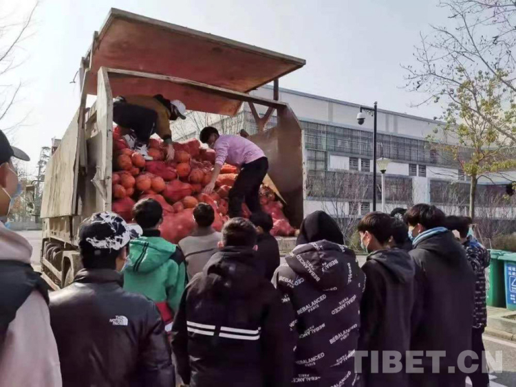 武漢西藏中學相關負責人介紹,山東壽光的蔬菜運到武漢后,因為交通管制原因,蔬菜運輸車被攔在龔家嶺收費站路口,西藏家長臨時黨支部很快組織20多人趕去幫忙,有的搬運貨物,有的協調車輛,終于把20噸蔬菜順利送到學校。