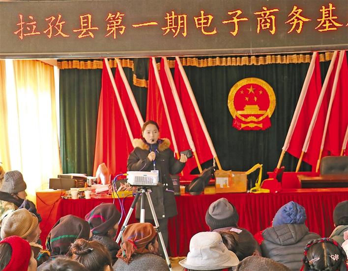 拉薩市尼木縣卡如鄉的卓瑪,在通過電商培訓后,不僅是電商服務站站長,還開了一家超市。2019年,卓瑪通過電商平臺銷售當地的農特產品,為村民提供代買百貨、代繳話費、快遞配送等服務。