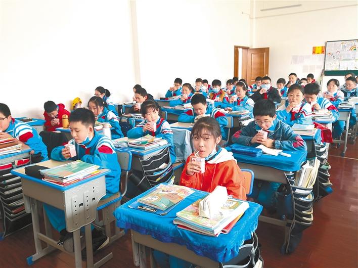 圖為拉薩市一小六年級(jí)六班的孩子們?cè)诤葘W(xué)生奶。通訊員 王愛(ài)軍 攝