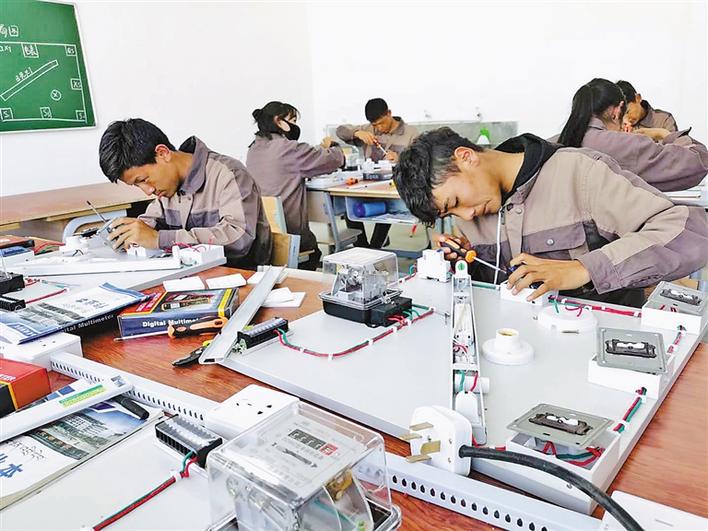 西藏技師學院的學生們在上電工實訓課程,為將來走上工作崗位奠定基礎。記者 孫文娟 攝