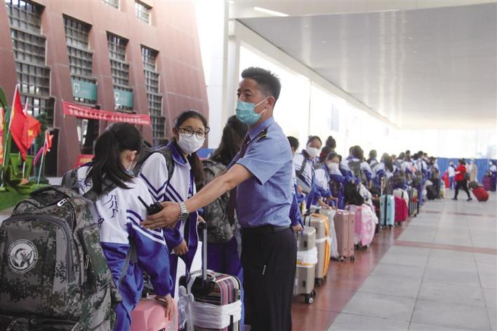 近日,歷經(jīng)兩天兩夜的旅途,469名返藏中考的學(xué)生乘坐Z165次列車從上海抵達(dá)拉薩。據(jù)拉薩火車站負(fù)責(zé)人介紹,為了與中國鐵路上海局集團(tuán)有限公司(以下簡稱上海局集團(tuán)公司)上海車站、常州車站黨委共同配合做好返藏考生服務(wù)工作,讓孩子們安全、舒適、健康地到達(dá)拉薩,在中國鐵路青藏集團(tuán)有限公司、上海局集團(tuán)公司的溝通聯(lián)系和幫助指導(dǎo)下,拉薩車站黨委根據(jù)返藏考生需求,結(jié)合實際完善疫情防控和客運(yùn)服務(wù)措施,針對返藏考生成立黨員服務(wù)突擊隊,為學(xué)生團(tuán)體提供無縫銜接的便利溫馨服務(wù)。