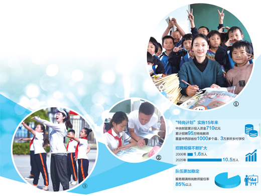 農村義務教育階段學校教師特設崗位計劃(簡稱“特崗計劃”)始于2006年,每年公開招考選聘數萬名高校畢業生到中西部貧困縣農村學校任教。[詳細] -
