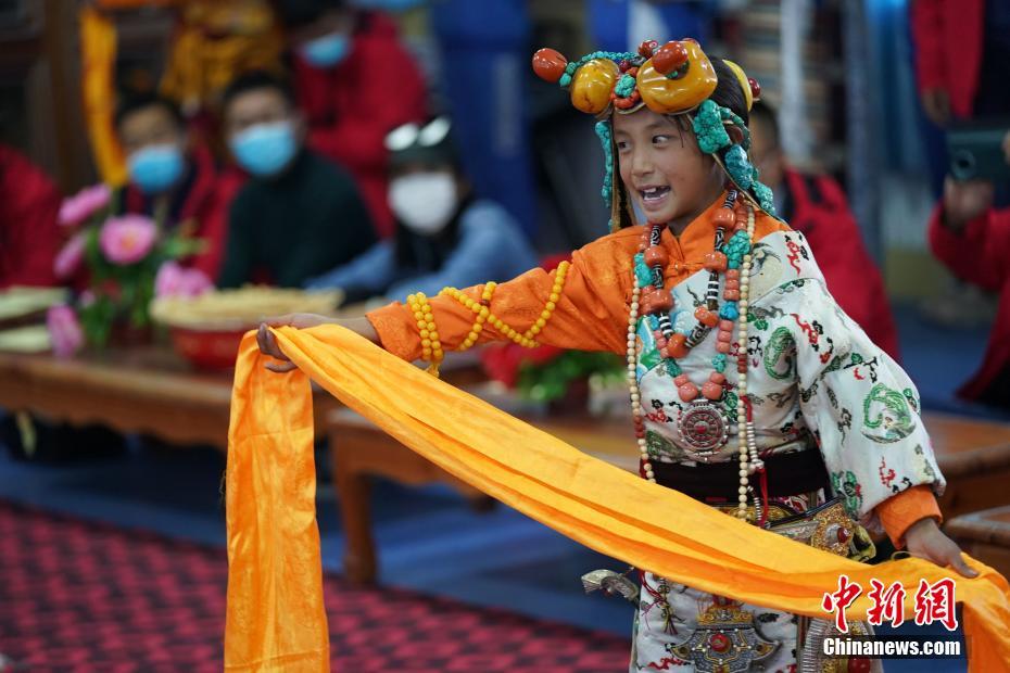 格薩爾史詩是聯合國教科文組織非物質文化遺產。青海省雜多縣第二民族完全小學自2016年起組建格薩爾文化傳承班,這其中包括環保班級、格薩爾書法班級、哈達說班級等九種類型。圖為10月14日,該校小學生表演格薩爾史詩說唱藝術。中新社記者 蘇丹 攝