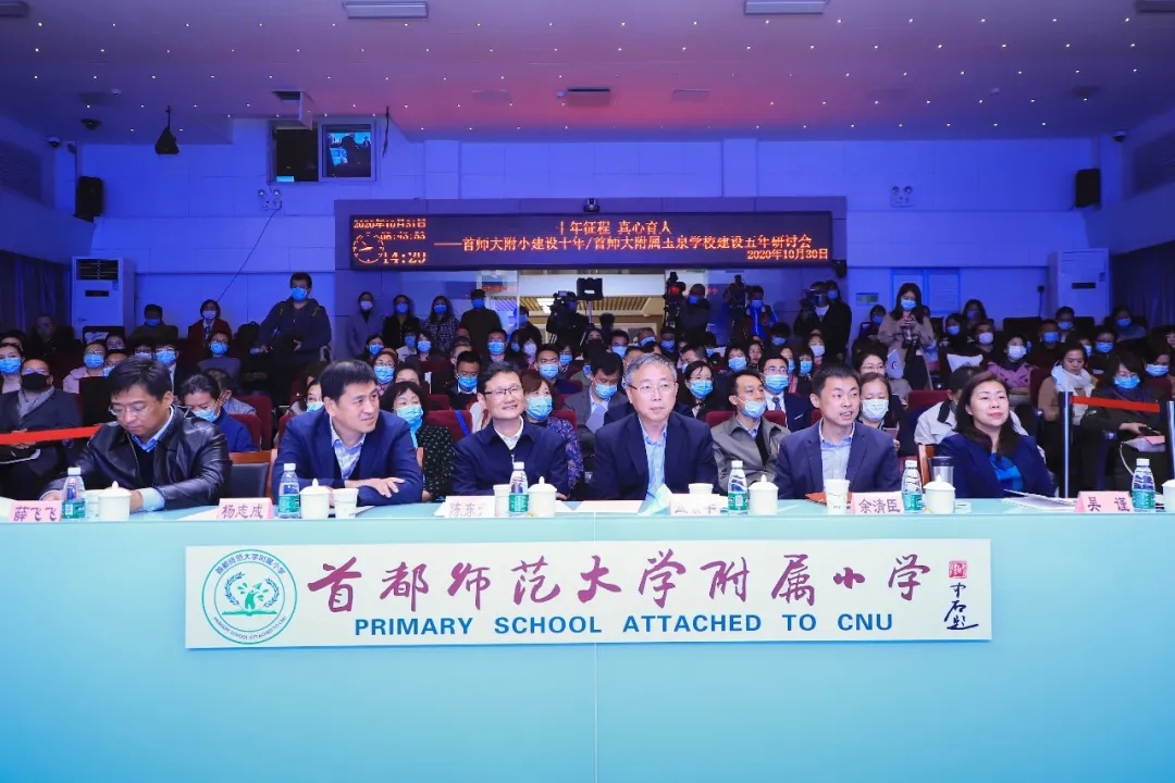 教育部基礎教育司副司長陳東升、首都師范大學校長孟繁華、首都師范大學副校長楊志成、海淀區教委副主任吳謹、四季青鎮鎮長薛飛飛,以及海淀區兩委主要領導及科室領導、首師大主要領導及初教院、教師教育學院等領導和專家,學校周邊部隊、社區領導,部分中小學、幼兒園校長、園長,學校家長代表等近200人現場參會。