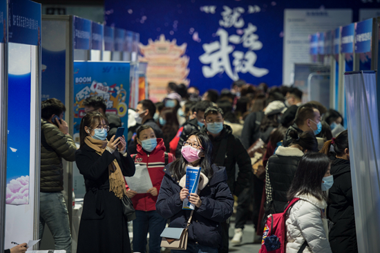 12月2日,2021屆全國普通高校畢業生就業創業促進行動(湖北·武漢)對接大會在洪山體育館正式啟動。人民視覺供圖