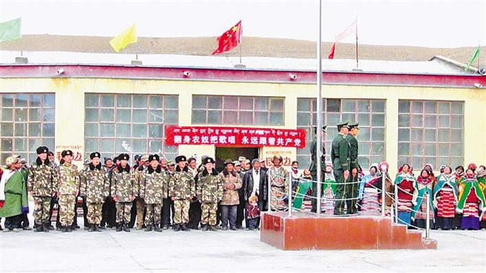 圖為3月28日,烏江村軍民聯合開展“翻身農奴把歌唱 永遠跟著共產黨”升國旗活動。