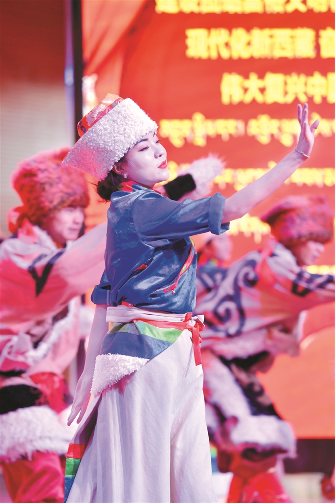活動現場,演員們為大家帶來了精彩的歌舞表演。圖片由拉薩融媒視覺組攝