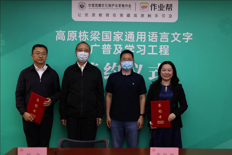中國西藏網訊 4月27日,中國西藏文化保護與發展協會、作業幫教育科技(北京)有限公司在北京簽署合作協議,啟動“高原棟梁”學習工程,助力青藏高原推廣普及國家通用語言文字。