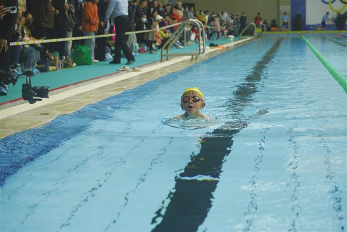 比賽現(xiàn)場,泳池邊一派熱鬧景象,小朋友們摩拳擦掌,舒展筋骨,認(rèn)真做著熱身運(yùn)動。“嘭!”槍聲響起的那一刻,選手們一個個猶如離弦之箭在50米的賽道上沖刺,朝著對岸終點(diǎn)勇往直前。選手們?nèi)σ愿埃瑺幏謯Z秒,碧水中揚(yáng)起層層水花,完美展現(xiàn)了參賽選手的風(fēng)采和游泳運(yùn)動的魅力。家長們在一旁打氣助威,拍視頻記錄著這一刻,選手奮力朝著對岸游動,永不放棄的精神,感動著觀看比賽的每一個人,賽場頓時暖了起來。