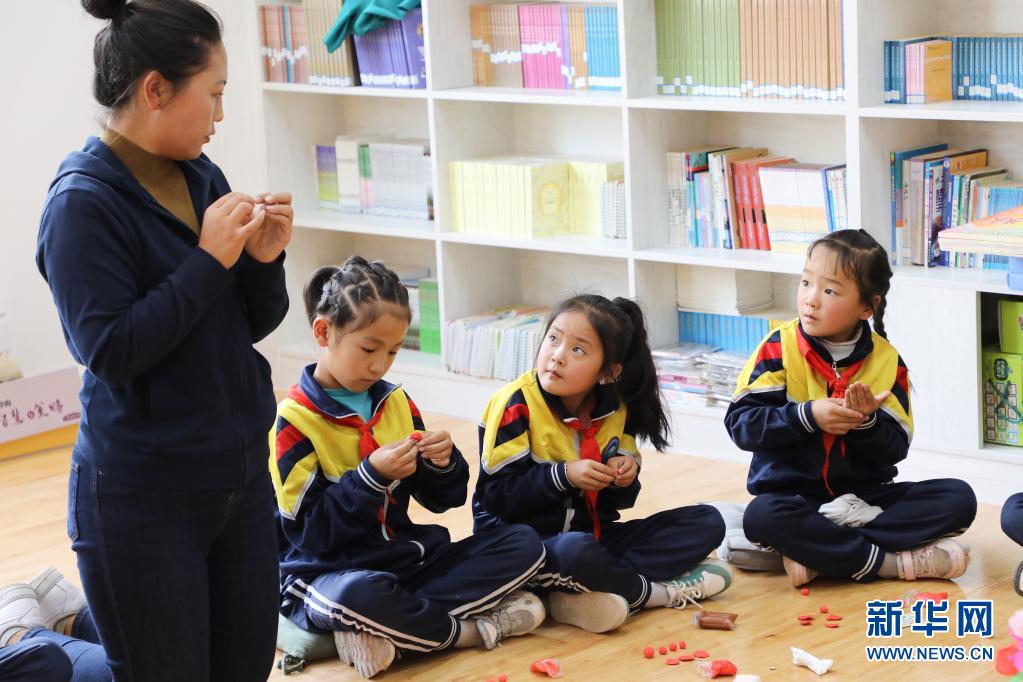 9月2日,黃南藏族自治州同仁市熱貢藝術完全小學的學生在泥塑興趣班上制作手工作品。新華社記者 吳剛 攝