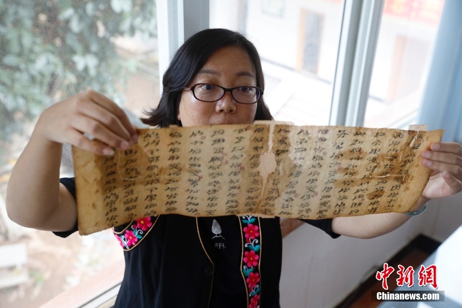 9月8日,云南楚雄,修復師檢查剛修復出來的古籍。楚雄彝族文化研究院位于云南省楚雄彝族自治州楚雄市,是云南省從事彝族文化專門研究的社會科學研究機構。該院始終注重對彝文古籍的收集、翻譯、整理等搶救性工作,現已收集了近3000部彝文古籍。 中新社記者 李嘉嫻 攝