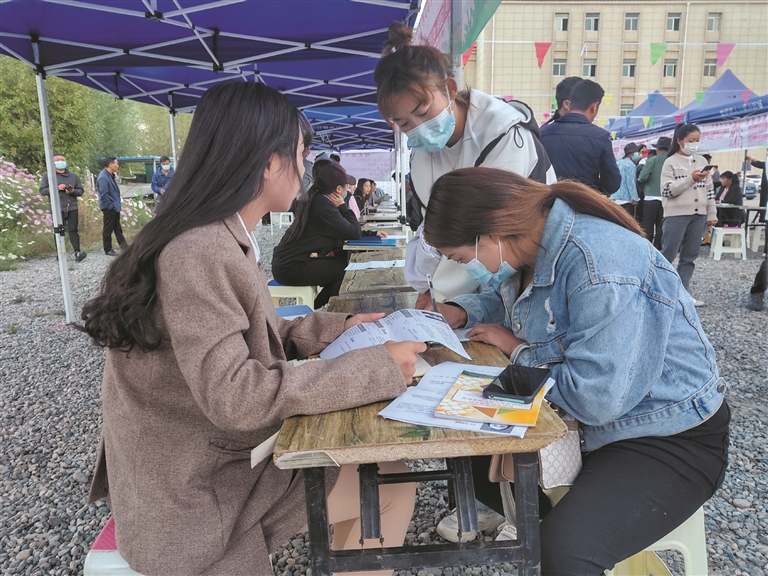 圖為高校畢業生正在填寫求職登記表。拉薩融媒記者 拉姆次仁攝