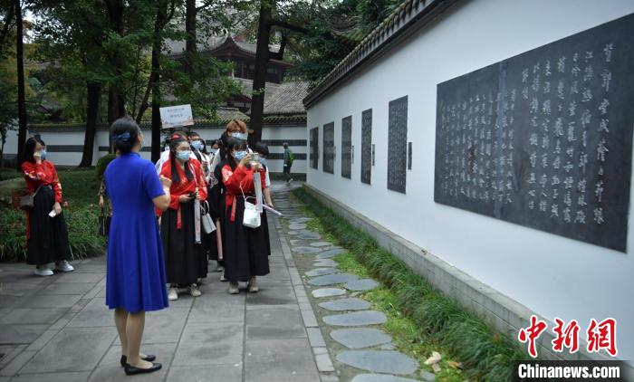 在成都的港澳臺僑大學生們正在參觀杜甫草堂博物館。 劉忠俊 攝