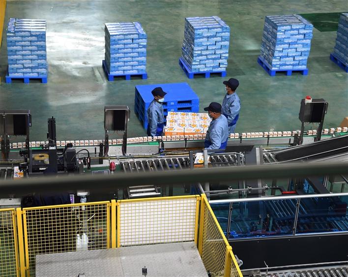 圖為西藏奶產品企業員工在包裝學生飲用奶產品。記者 洛桑 攝