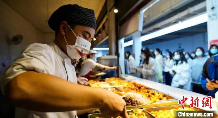 成都銀杏酒店管理學院部分后勤人員出現健康碼變“黃”的情況。這時成都銀杏酒店管理學院的志愿者們挺身而出,酒店管理系烹飪專業45名同學及來自各系的86名志愿者同學共計131人,主動參與到食堂相應工作中來。案板刀工精巧、打菜下手穩準、形象氣質專業,他們精心烹飪的飯菜得到了同學們的一致好評。