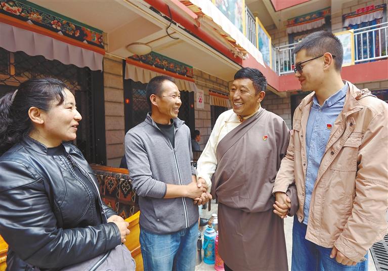 圖為社區(qū)黨員入戶走訪,了解群眾困難和訴求。記者 次旺 洛桑 攝