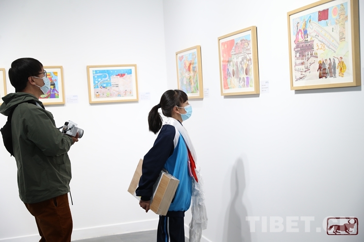 此次展出的百余幅作品均為拉薩市中小學生誠意之作,他們用畫筆描繪出西藏和諧美麗、文明富強的新面貌,雖稚嫩卻靈氣十足,雖年少卻志在萬里。數尺之雅,足顯拳拳之心;片紙之外,可見耿耿情懷。漫步在展覽現場,一幅幅色彩鮮活、筆觸稚嫩的繪畫作品,蘊涵著小畫家們對美好生活的追求、對幸福生活的感恩、對未來生活的憧憬,展現出他們熱愛黨、熱愛祖國、熱愛家鄉、熱愛生活積極向上的精神面貌。