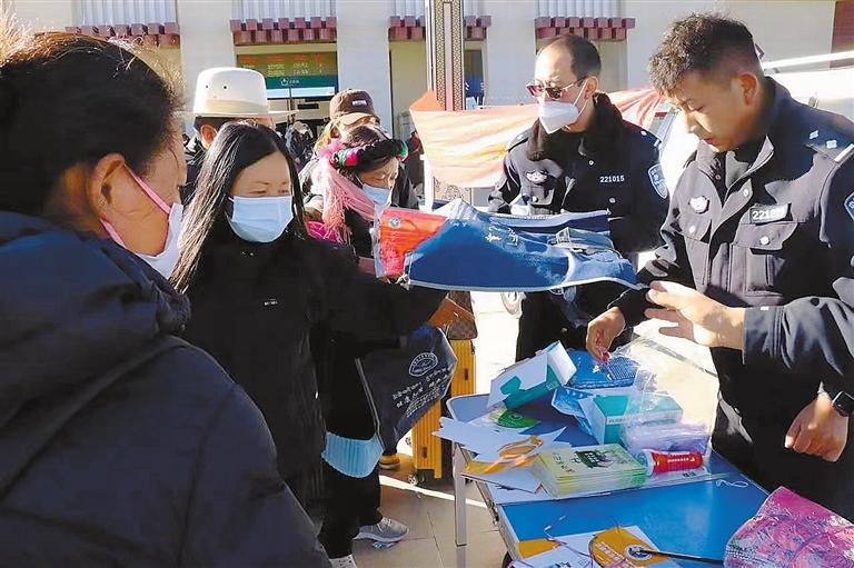 7日,日喀則市禁毒辦組織警力在日喀則火車站開展以“平安春運·禁毒同行·遠離毒品·健康生活”為主題的禁毒宣傳教育活動。