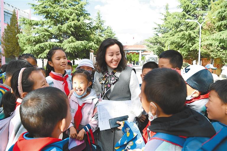 援藏教師和孩子們?cè)谝粔K(拍攝地:山南市乃東區(qū)) 王志偉 攝