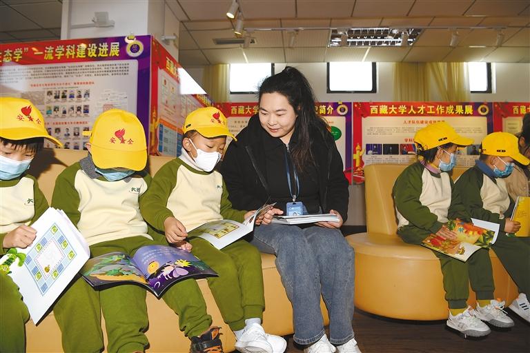 圖為西藏大學(xué)圖書(shū)館的老師與孩子們?cè)谝黄痖喿x繪本。記者 李洲 攝